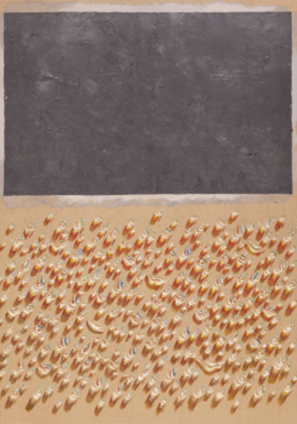 1975년, 프랑스 신문 '르 피가로' 위에 물방울을 그린 작품이에요. 이 그림은 물방울에 신문의 글자가 비쳐 보이면서 현실과 환상이 만나는 멋진 순간을 보여줘요. 아이들이 구슬 놀이를 하듯 순수하게, 그리고 사색하며 그린 작품이라 더 특별하답니다.